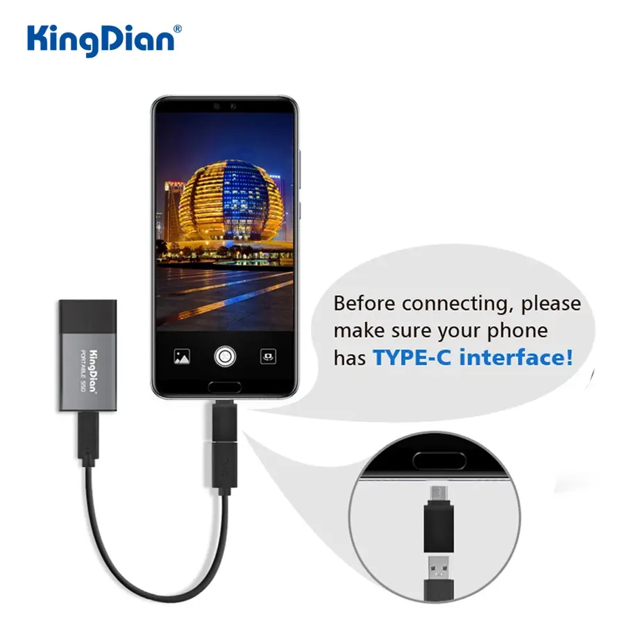KingDian Portable SSD 120GB 250GB 500GB 1TB External SSD USB3.0 Type C